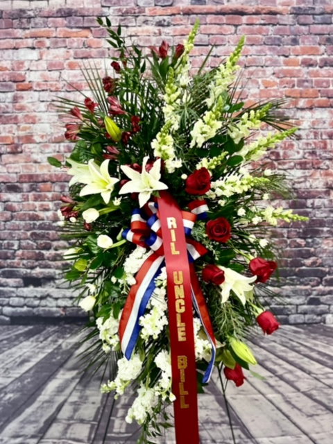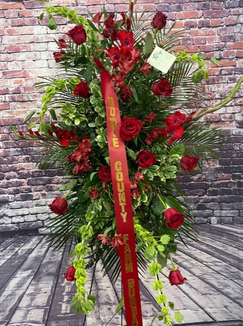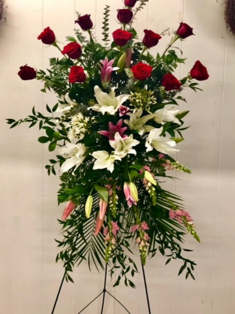 Standing Sprays are a beautiful way to show your love for a deceased one. It will be created with love and beauty. Below are some samples of what we can create for your loved one to be remember by.